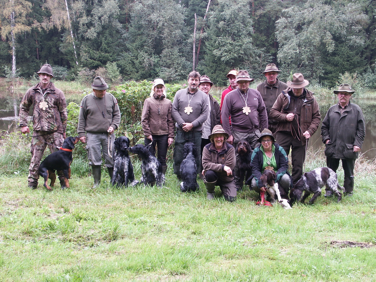 In unserer Jägerschaft stehen seit dem 12. September 2014 sieben weitere geprüfte Jagdhunde für den Einsatz in den Revieren bereit. Bei der Brauchbarkeitsprüfung in den Revieren Eigenjagd Konradsreuth und Walburgisreuth, stellten die vierbeinigen Jagdbegleiter ihr Können in den Fächern Gehorsam, Appell, Schussfestigkeit, bei der Nachsuche sowie bei der Wasserarbeit und im Einsatz auf der Haar- und Federwild-Schleppe eindrucksvoll unter Beweis. Das bestätigten am Ende der rund siebenstündigen und anspruchsvollen Prüfung die Verbandsrichter Michael Mickisch, Gabriele Wirth und Peter Wunner den Hundeführern und ihren jagdlichen Begleitern auf vier Pfoten. Mit Hörnerklang zum Auftakt eröffneten die Jagdhornbläser den Prüfungstag und unser Vorsitzender Hartmut Opitz wies in seiner Begrüßung auf die große Bedeutung jagdlich brauchbarer Hunde im Sinne der Waidgerechtigkeit hin. Er dankte den Teilnehmern für ihr Engagement und ihre Bereitschaft, jagdlich brauchbare Hunde zu führen. Immerhin bereiteten sich die Hundeführer rund sechs Monate auf die Dressurprüfung und die anschließende Brauchbarkeitsprüfung vor. Fundierte fachliche Betreuung erhielten sie dabei von unserem Hundeobmann Volker Knörnschild und seinem Mithelfer Markus Trapp. Richterobmann Michael Mickisch nutzte die Gelegenheit, den Hundeführern zu gratulieren und ihnen ein Lob für die intensive Vorbereitung auf die Prüfung auszusprechen. Fünf Jagdhunde hatten sich der Brauchbarkeitsprüfung für alle Reviere unterzogen, zwei Hundeführer absolvierten die Prüfung „brauchbar für Nachsuche auf Schalenwild“. Hartmut Opitz dankte abschließend den Revierinhabern Wolfgang Wirth bzw. Armin Hohmann und gratulierte den Hundeführern zur bestandenen Prüfung, verbunden mit dem Wunsch nach viel gemeinsamen „Waidmannsheil“ mit ihren Jagdgefährten.