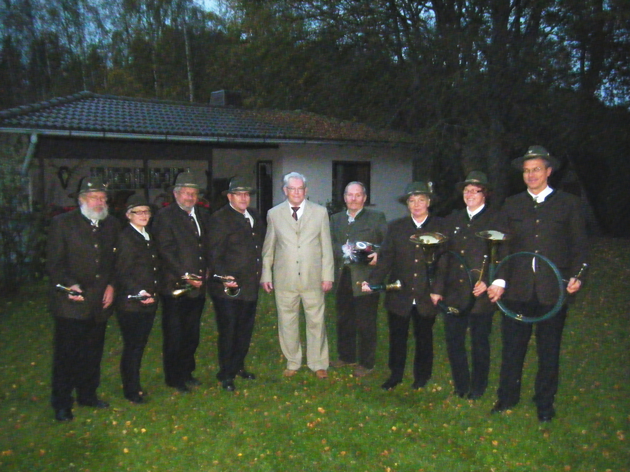 Bereits seit 1. Januar 1961 gehört Edgar Lochner als Mitglied unserer Jägerschaft an und nun feierte er am 2. September 2014 seinen 80. Geburtstag. Herr Lochner war bis zum Jahr 2008 als Kassenprüfer für unsere Jägerschaft tätig und ist sicher vielen noch aus dieser Tätigkeit her bekannt. Zu den zahlreichen Gratulanten gehörte natürlich auch unser Vorsitzender Hartmut Opitz, der die Glückwünsche der Jägerschaft Hof und ein kleines Geschenk überbrachte. Für einen musikalischen Gruß sorgten unsere Jagdhornbläser.