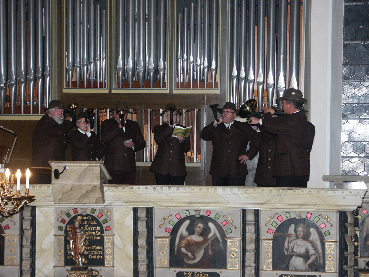 In ihr übernahm die Bläsergruppe Rehau-Selb unter der Leitung von Dr. Helmut Bonnekamp die liturgische Musik – einst der Orgelersatz bei den Gottesdiensten im Wald – und ließ im weichen, vollen Ton selbst die Kirchenglocken erklingen. Die Liturgie des Gottesdienstes und die Gebete sprachen im Wechsel der katholische Pfarrer Hans-Jürgen Wiedow und Pfarrer im Ruhestand Hartmut Bezzel. Dieser stellte das Miteinander von Mensch und Natur in den Mittelpunkt seiner Predigt und ging dabei auf den in der heutigen Zeit großen Konflikt – viele Rehe, Hirsche und Wildschweine müssen von staatlicher Seite her geschossen werden – und die daraus entstehenden Probleme mit Tierschützern und Naturfreunden, ein. Die Jagd sei jedoch für den Erhalt des Gleichgewichtes in der Natur zu einem „Teil der Fürsorge“ geworden, angewandt beim rücksichtsvollen Umgang mit der Schöpfung im Bewusstsein, dass alles Tun in der Verantwortung vor Gott geschieht. Nach dem Gottesdienst fand dann im Schützenheim in Jägersruh unsere Hubertusfeier statt, zu der wir rund 60 unserer Mitglieder begrüßen konnten.