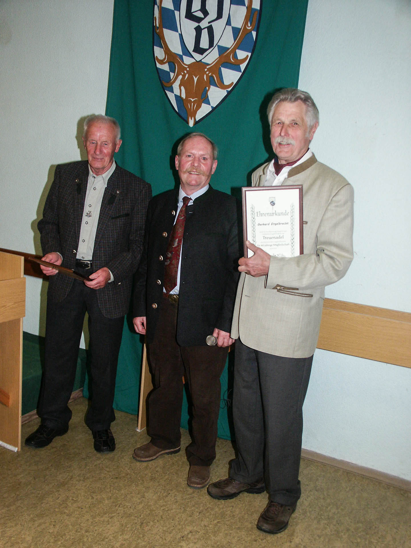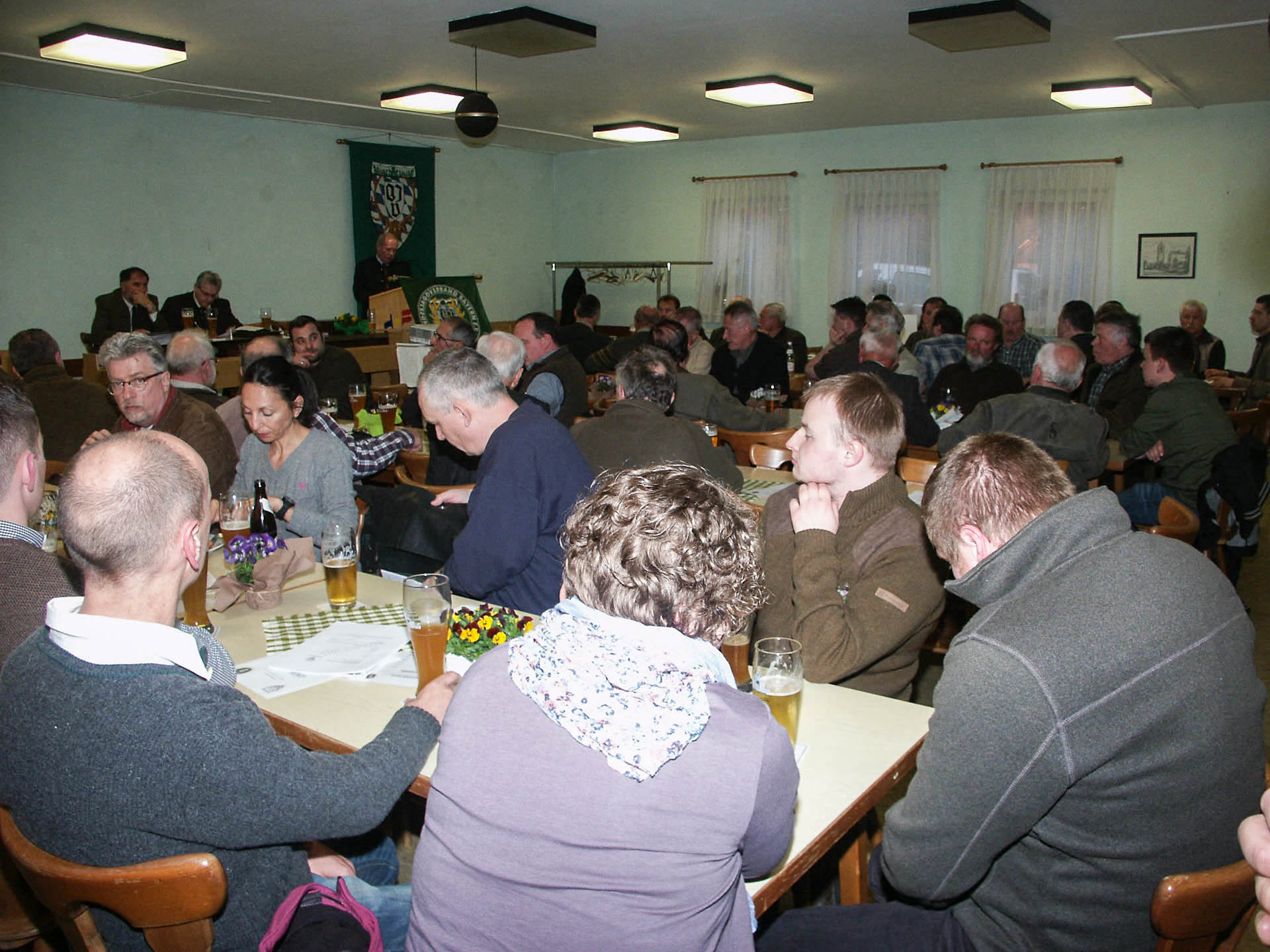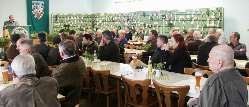 In seinem Jahresrückblick gab unser Vorsitzender einen umfassenden Bericht über die Aktivitäten der Jägerschaft und des Vorstandes im vergangenen Jagdjahr bekannt. So wurden zahlreiche Veranstaltungen auf BJV-, Bezirks- und Kreisgruppenebene wahrgenommen, wie etwa der diesjährige Landesjägertag in Weiden oder diverse Treffen im Rahmen der jagdlichen Fort- und Weiterbildung. Innerhalb der Jägerschaft haben unter anderem die Teilnahme am Kreisgartentag in Zedtwitz, an der Oberfrankenausstellung, die Durchführung diverser Schießveranstaltungen und der Besuch von Geburtstagsfeiern für ein reges Vereinsleben gesorgt. In diesem Zusammenhang besonders erwähnenswert sind dabei der 85. Geburtstag unseres Ehrenmitglieds Helmut Wilczek und der 80. Geburtstag unseres ehem. 2. Vorstandes Rudolf Wolf. Außerdem veranstalteten wir eine Hubertusmesse in der Hofer Hospitalkirche, beteiligten uns am Weihnachtsmarkt der Hospitalstiftung, bei dem wir unter anderem Holzprodukte der Hofer Lebenshilfe verkauften und es fand ein Vortrag zum Thema „Greening“ statt.