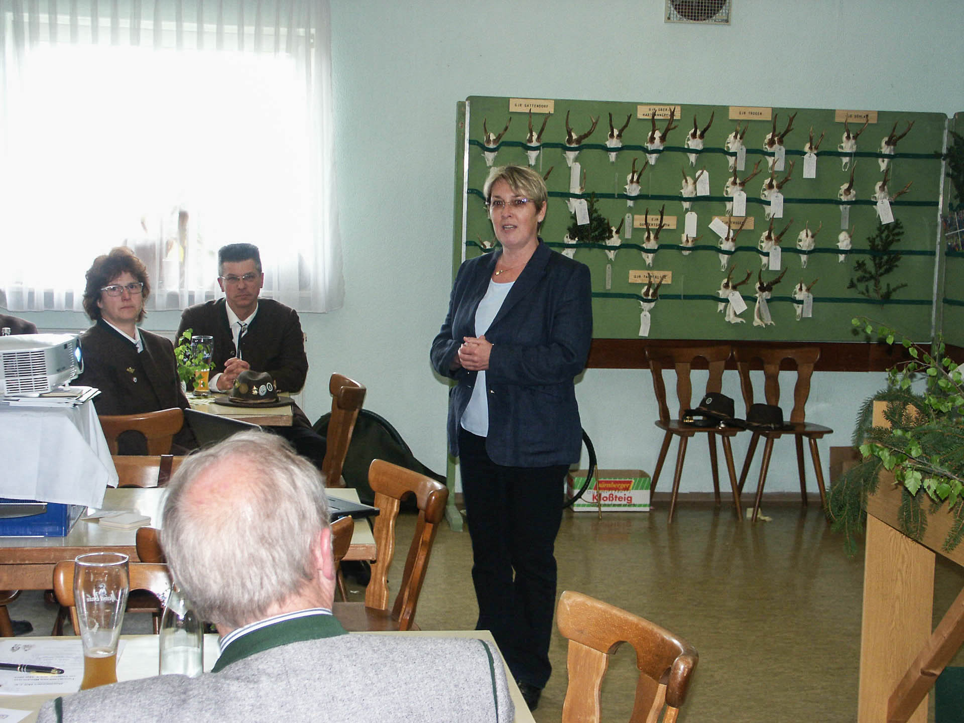 Frau Dr. Fuchs (Bild) vom Sachgebiet Verbraucherschutz, Veterinärmedizin der Regierung von Oberfranken, führte in einem sehr informativen Vortrag zum Thema „Wildkrankheiten und Wildbrethygiene“ die verheerenden wirtschaftlichen Folgen für die Landwirtschaft und auch für die Jagd bei einem Ausbruch der Afrikanischen und der Europäischen Schweinepest bzw. der Maul- und Klauenseuche aus. In Sachen Wildbrethygiene ging sie auf den Begriff der „kundigen Person“ ein und warnte vor einer Ansteckungsgefahr des Jägers mit Brucellose.