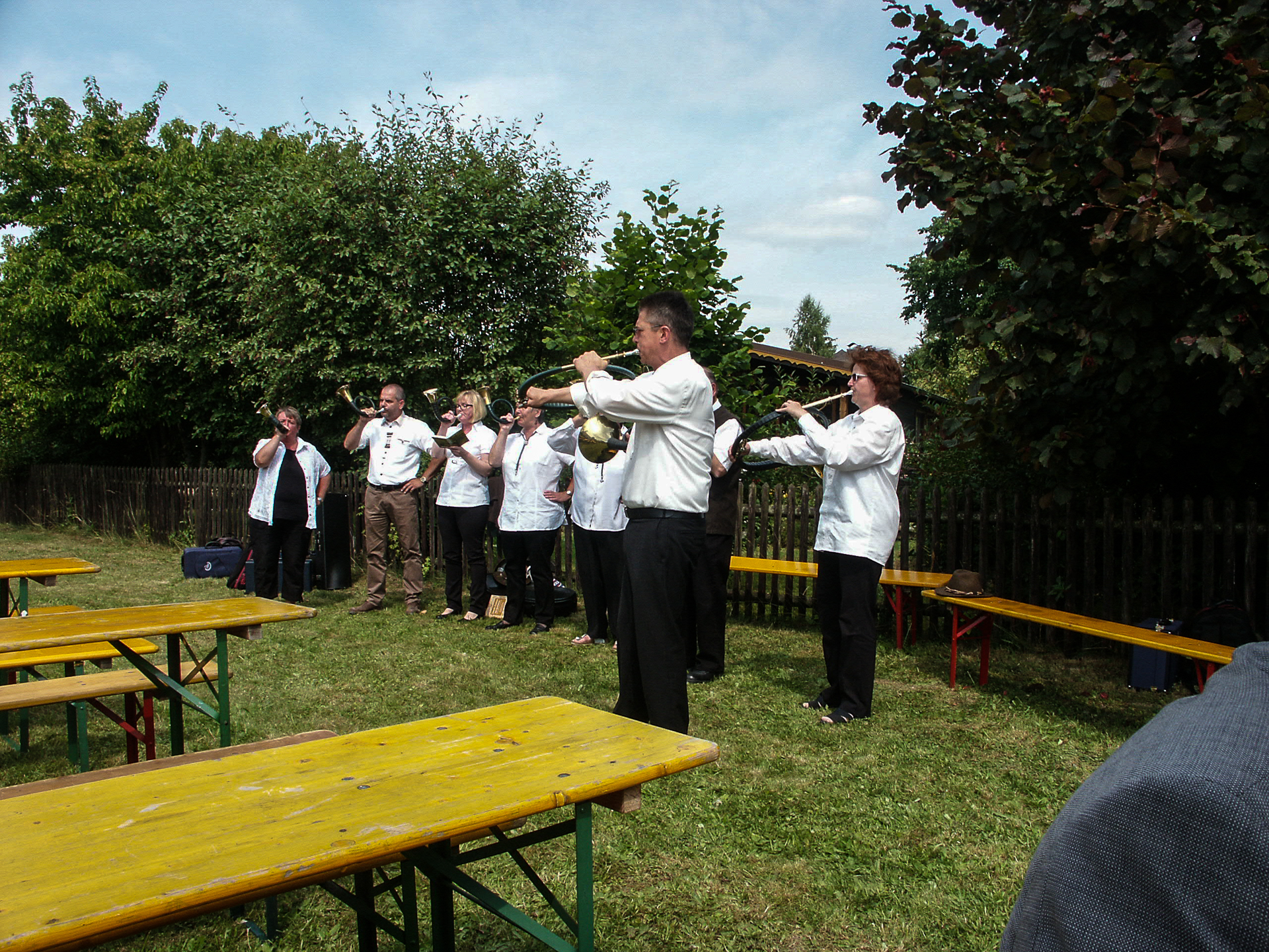 Kein Wunder, dass deshalb an jenem Sonntag die Farbe Grün im Hofer Ortsteil Jägersruh überwog. Auftakt der Veranstaltung war ein gemeinsam mit der Kirchengemeinde von Sankt Johannes durchgeführter Gottesdienst, der durch Herrn Pfarrer Glas, den Posaunenchor des CVJM und den Jagdhornbläsern gestaltet wurde.