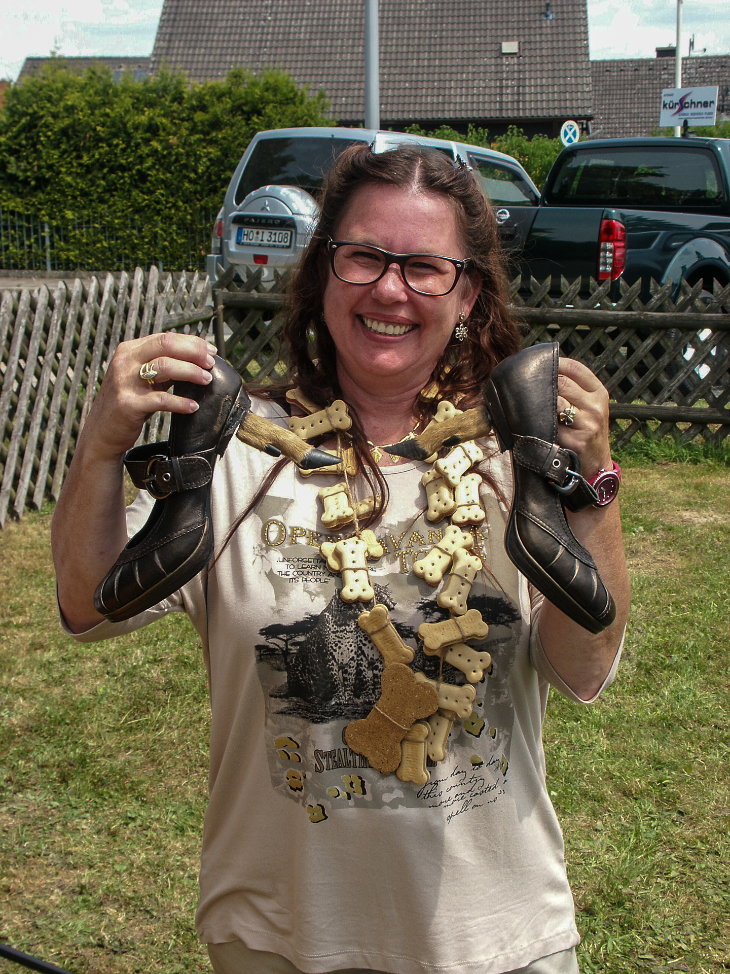 Die Absolventen des kurz zuvor abgeschlossenen Jagdkurses hatten sich aber auch etwas für diesen Tag überlegt. So überreichten sie mit launigen und amüsanten Worten den Ausbildern auf die jeweiligen Unterrichtsfächer bezogene Geschenke und bedankten sich bei Hartmut Opitz für seine Geduld bei der Waffenhandhabung und für die Durchführung der praktischen Stunden. Auch altgediente Jäger konnten in diesem Zusammenhang Begriffe wie etwa „Ansitzeinrichtung“ oder „Fährtenschuh“ neu definieren.