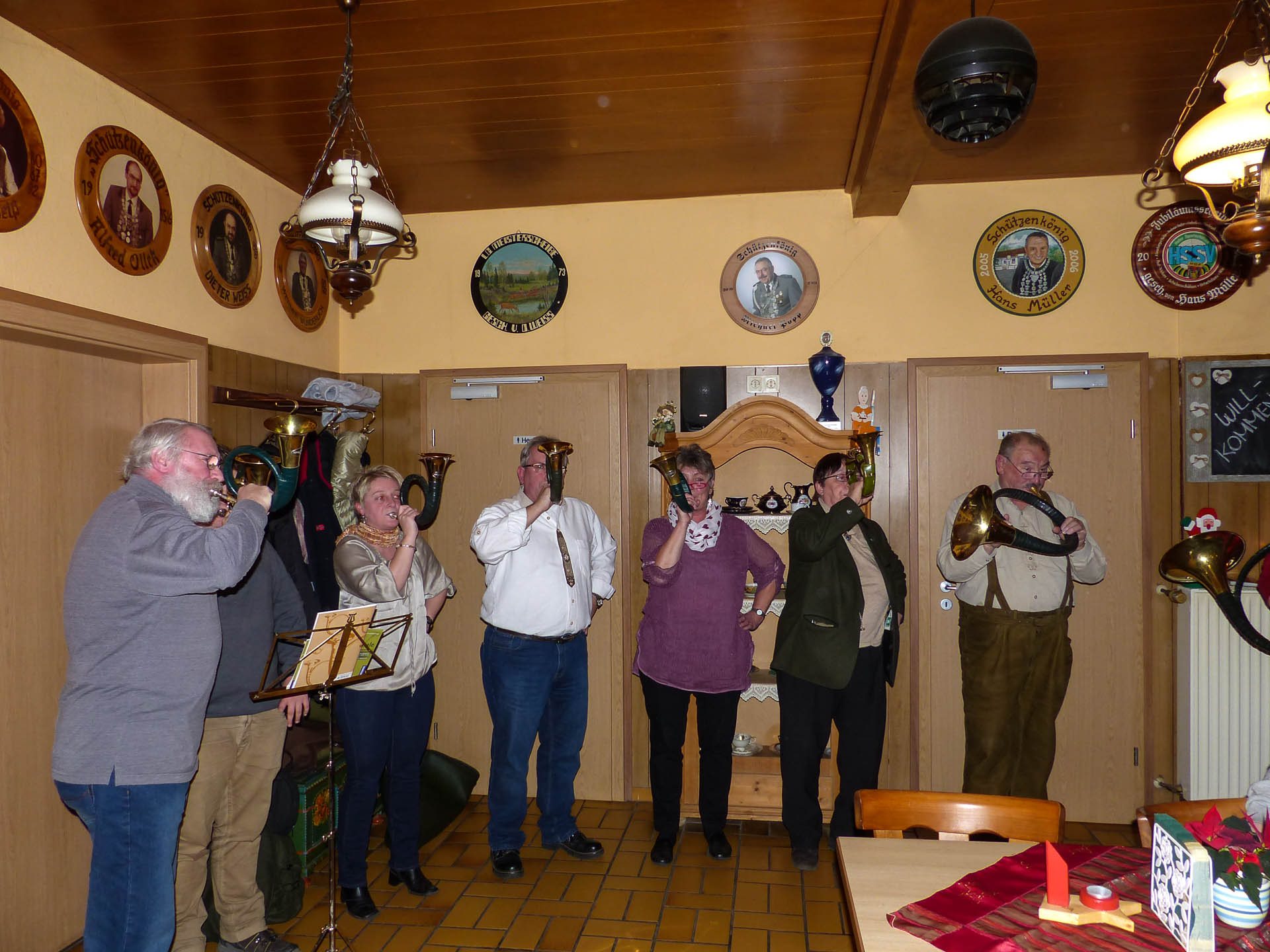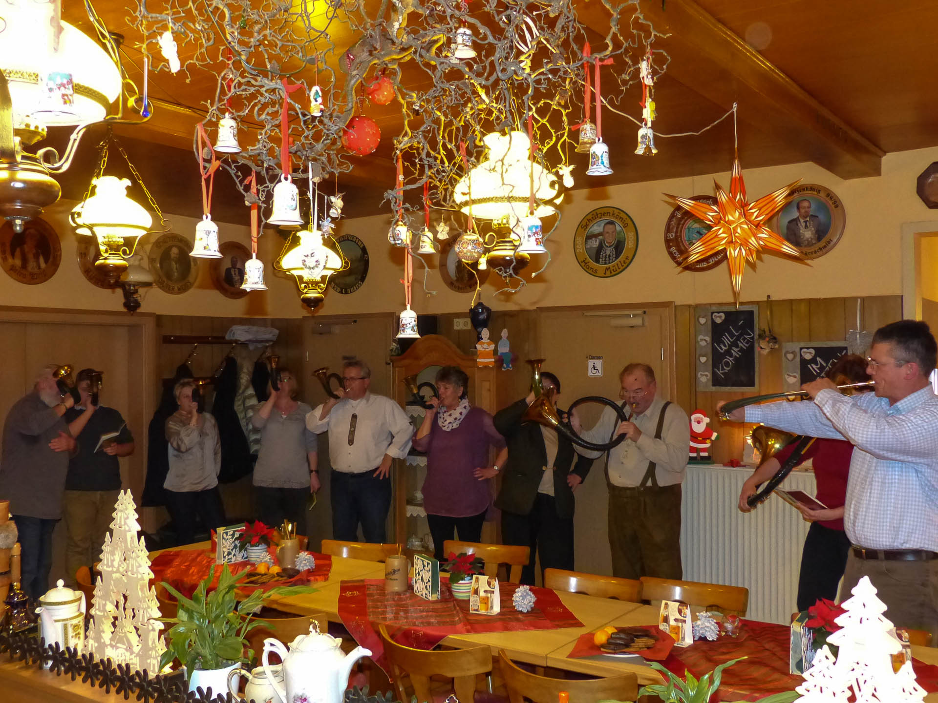 Unsere Jagdhornbläser trafen sich am 08.12.2015 in der Gaststätte Schützenhaus in Jägersruh, in der drei Tische durch den Wirt René weihnachtlich eingedeckt wurden. Neben gutem Essen und geselligen Gesprächen, ließen die Bläser im Beisein der Gäste des Schützenhauses ihre Jagdhörner erklingen und ernteten dafür kräftigen Applaus. Die Bläserkameraden Willi Gerstner und Waldemar Schneider spielten auf dem Akkordeon und auf dem Flügelhorn Weihnachtslieder, zu denen auch gesungen wurde.