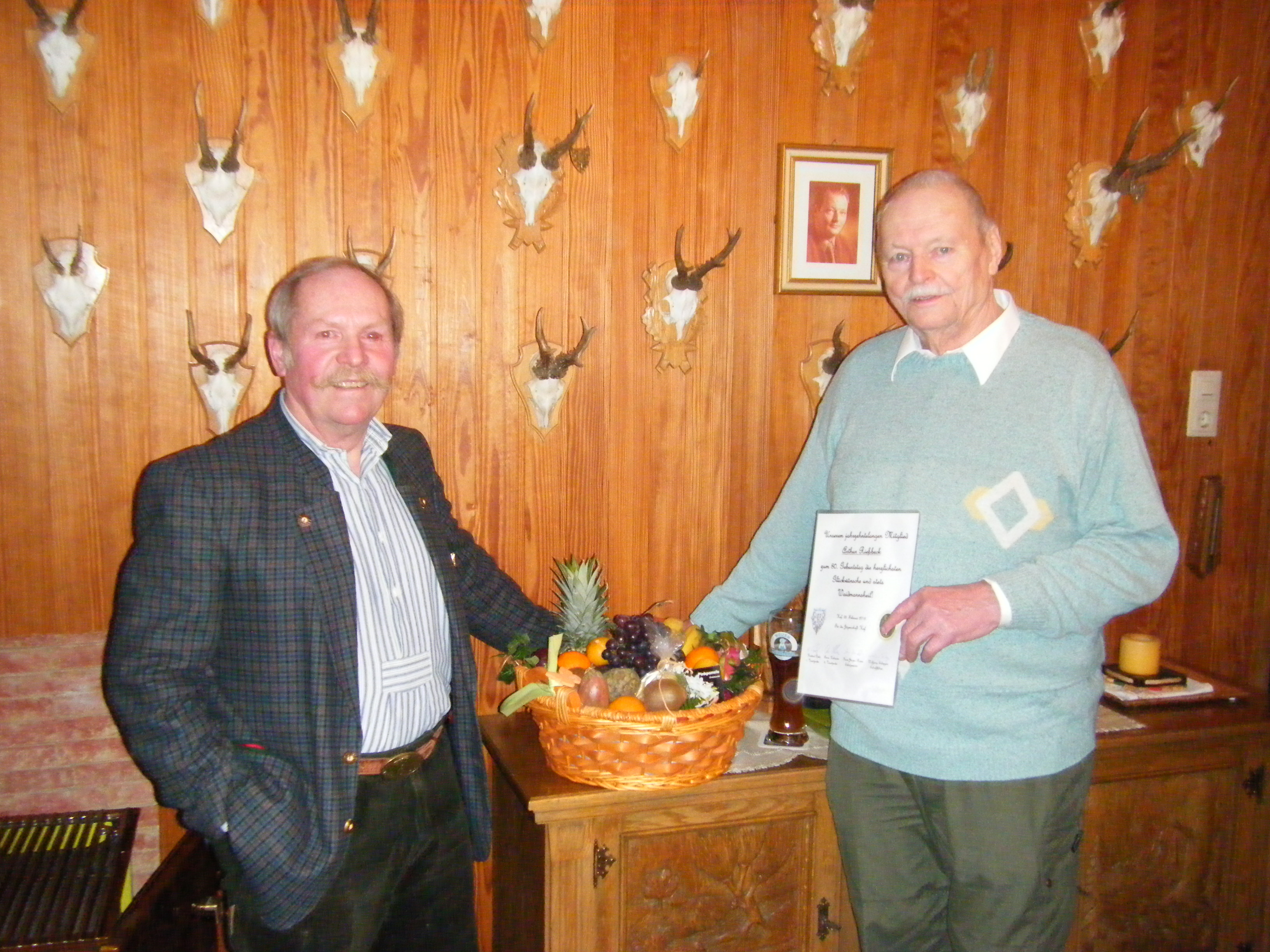 Am 23.02.2016 konnten wir einem weiteren „Urgestein“ der Hofer Jägerschaft zu seinem 80. Geburtstag gratulieren. Im Rahmen der Geburtstagsfeier von Arthur Rießbeck überreichte unser 1. Vorsitzender Hartmut Opitz einen Obstkorb und die Jagdhornbläser überbrachten musikalische Grüße.