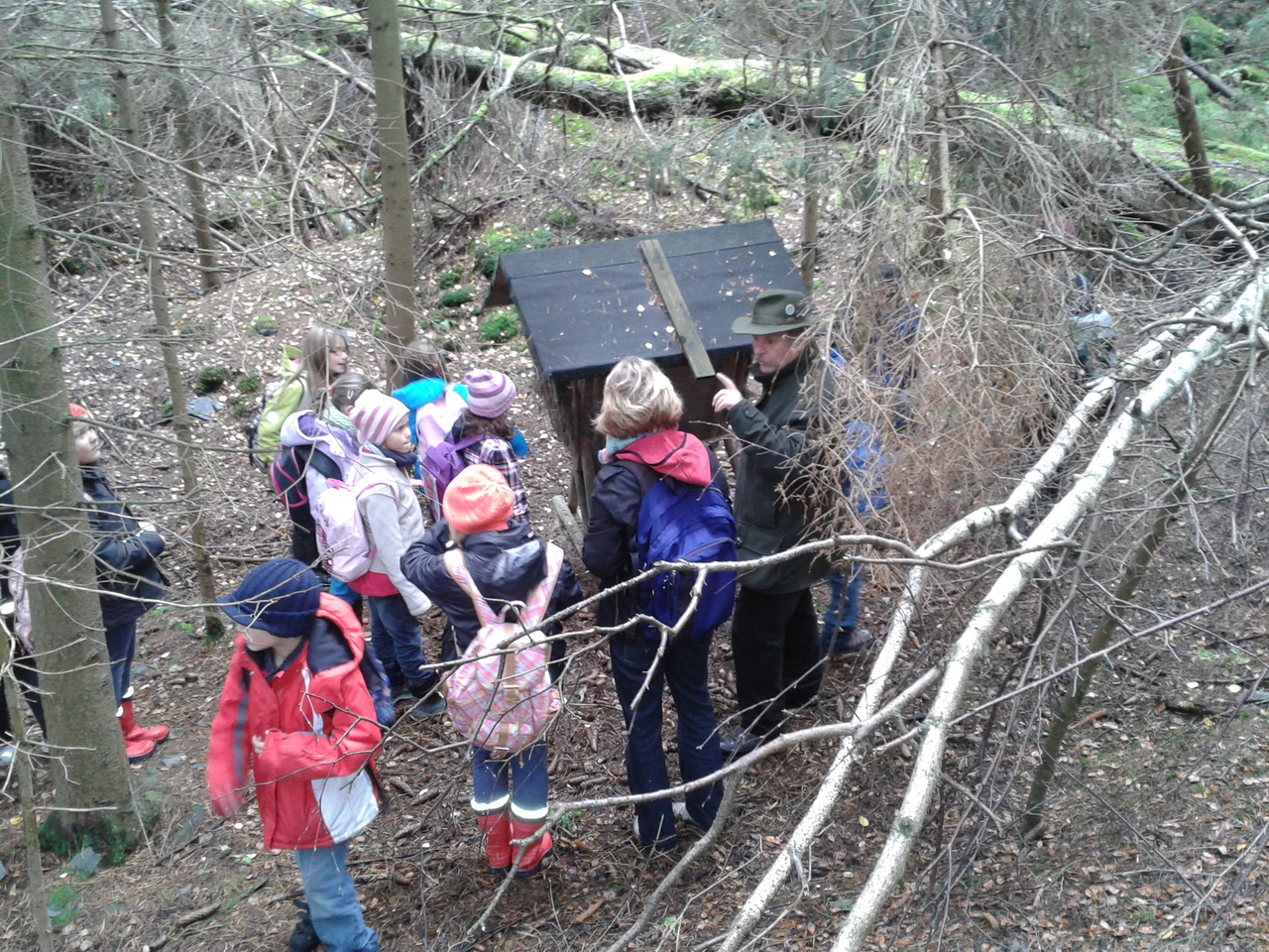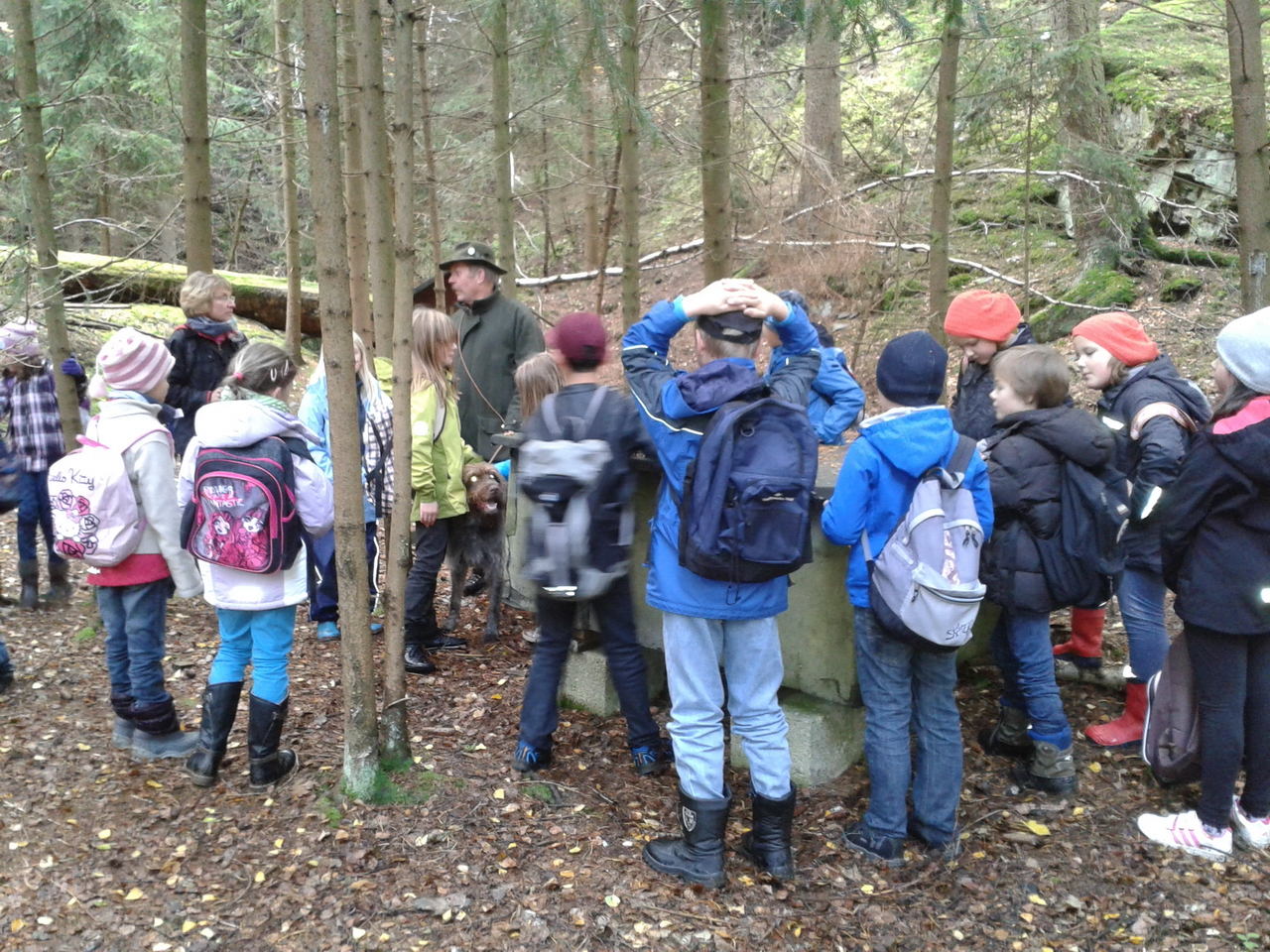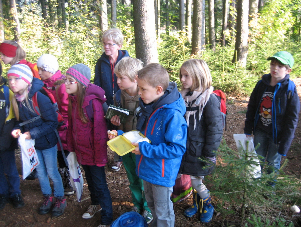 Im Revier Pirk nahmen nach der Nistkastenaktion im Jahr 2011 heuer wieder die Schüler der dritten Klassen der Krötenbrucker Grundschule während eines Unterrichtsganges mit ihren Klassenleiterinnen Frau Gade und Frau Kugler, den Wald in Augenschein. In einem Waldstück beim Knollenteich fesselte Jäger Walter Heinrich die Drittklässler mit den Themen Wald, Tiere des Waldes, Pflanzen des Waldes und Pilze. Mit vielen Fragen begeisterten sich die Kinder an den Ausführungen des Jägers. Die Mutter des Waldes und der Brotbaum, das Reh, der Dachs und das Wildschwein, Röhren- und Lamellenpilze sind den jungen Schülern anschaulich erklärt worden.