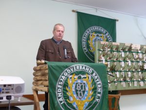Regierungsbezirksvorsitzender Prof. Dr. Wunderatsch informierte die Anwesenden über die auch im Landkreis Hof anstehende Einführung von Nachtzielgeräten zur Bejagung des Schwarzwildes. Hier werde aber nicht pauschal eine Genehmigung erteilt, sondern es werde jeder Antrag einzeln auf seine Berechtigung geprüft. Er ging auch auf die Bezuschussung eines Wurftaubenschießstandes durch den Bayerischen Jagdverband ein und nannte abschließend Einzelheiten zu den momentan anstehenden Sozialwahlen, an der sich die Jäger mit einer eigenen Liste beteiligen würden.