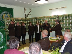 Unter den Klängen der Jagdhornbläser dankte 1. Vorsitzender Hohmann den Jägerinnen und Jägern für die sorgfältige Bejagung einheimischer Wildarten und wünschte allen viel Weidmannsheil im neuen Jagdjahr.