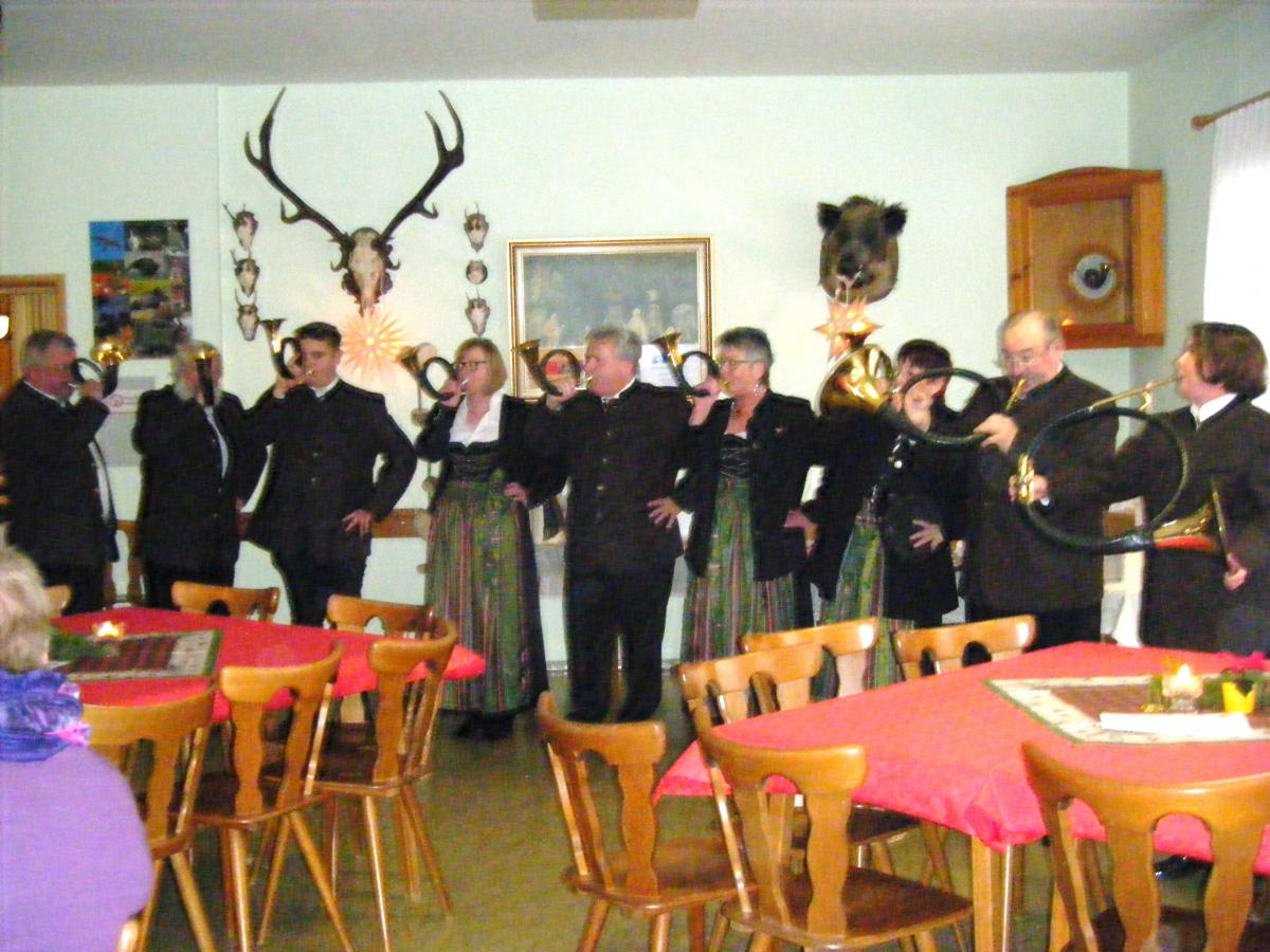 Am 17. Dezember 2017 veranstalteten wir als letzten Termin für dieses Jahr wieder eine jagdliche Adventsfeier. Neben einem großen Kuchen- und Tortenangebot gab es auch wieder verschiedene Wildspezialitäten wie Wildbratwürste, Wildsteaks, Wildleberkäse und Wildknacker. Leider fanden sich aber erneut nur rd. 70 Personen zur Feier ein und deshalb werden wir im nächsten Jahr voraussichtlich nur noch Kaffee und Kuchen anbieten. Der kleine Weihnachtsmarkt fand aber trotzdem Anklang und es konnte einiges verkauft werden. Vielen Dank an die Helfer von unserem Jagdkurs, an Andrea und Isabella Hohmann, an Gertraud Opitz und Barbara Schrenk sowie an Roland Heinrich, Tim Hofmann und Günter Werner für die Arbeit in der Grillbude und am Ausschank. Bedanken wollen wir uns auch bei Volker Knörnschild, der wieder einen Stand mit Arbeiten der Hochfränkischen Werkstätten aufgebaut hatte und natürlich bei den Spenderinnen der Kuchen und Torten.