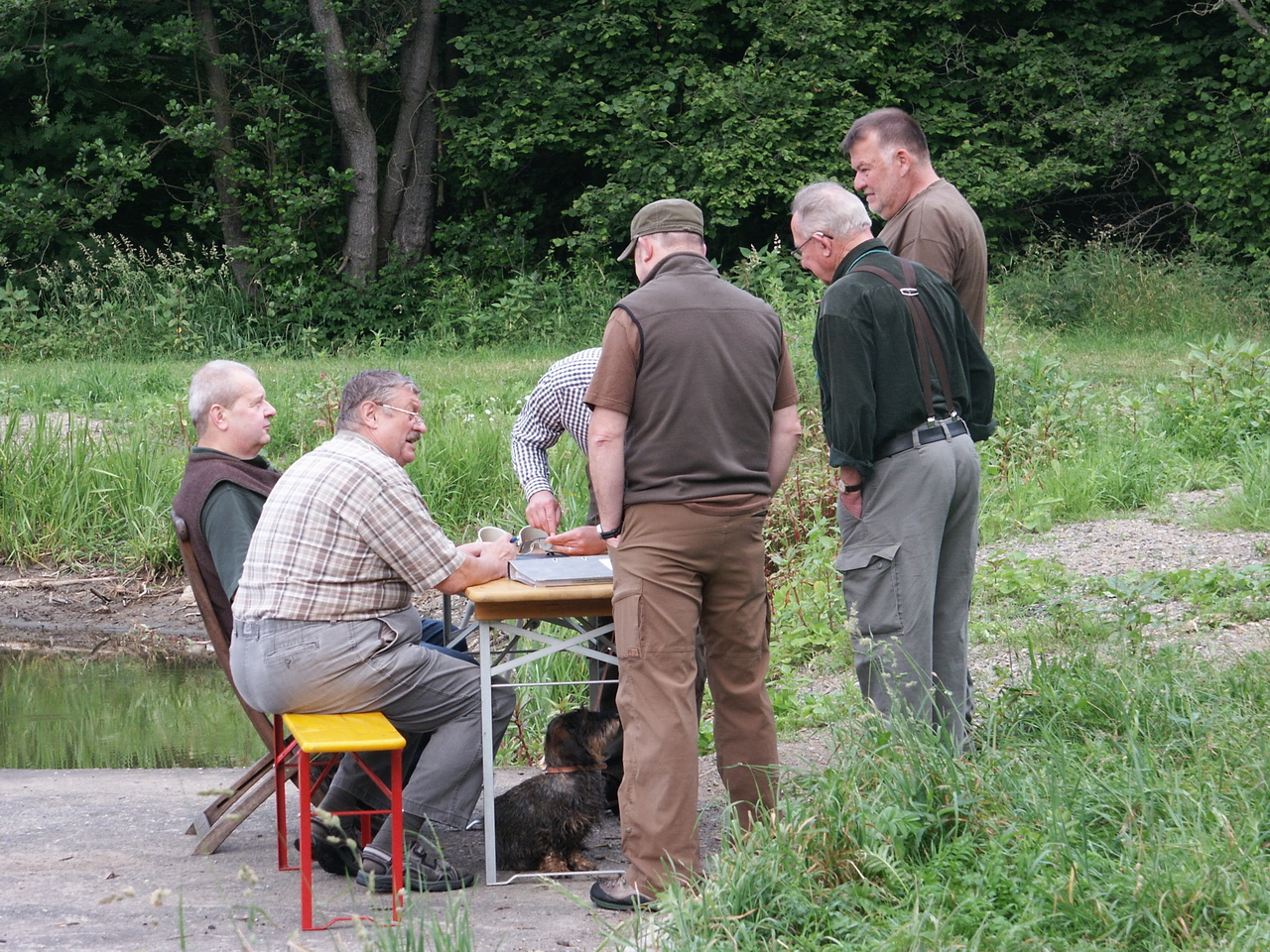 Die Teilnehmer des diesjährigen Hundekurses und unser Hundeobmann Volker Knörnschild, konnten sehr zufrieden sein. Mit viel Arbeit und noch viel mehr Geduld, aber auch Freude an der Sache, hatten sich die Hundeführer mit ihren „Jagdhelfern“ seit Mitte März auf diesen Tag vorbereitet.