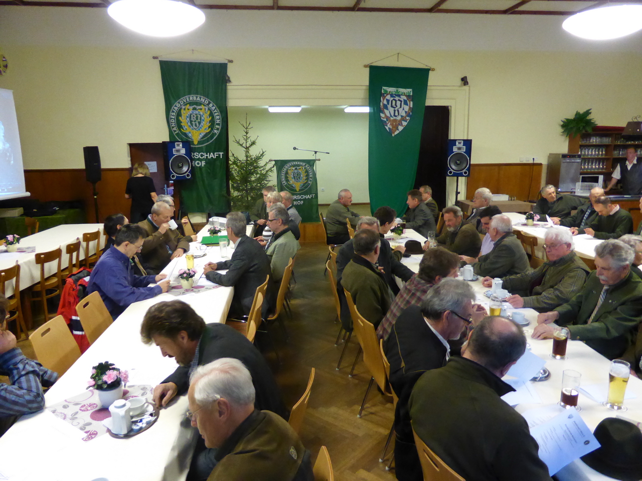 Gut besucht war unsere Hegeschau am 18.05.2013 im Saal der Gaststätte Alsenberger Keller, die wir heuer nach längerer Zeit nicht mehr gemeinsam mit der Jägerschaft Naila veranstaltet haben. Nach Eröffnung durch die Jagdhornbläser, begrüßte unser Vorsitzender Hartmut Opitz die anwesenden Ehrengäste Herrn MdL Alexander König, Herrn Forstdirektor Krämer vom Amt für Ernährung, Landwirtschaft und Forsten, den Sprecher der Jagdgenossenschaften im BBV, Herrn Klaus Bäker, Herrn Zirbs von der Unteren Jagdbehörde des Landratsamtes Hof sowie Herrn Jagdberater Wolfgang Wirth und dessen Stellvertreter Herrn Eberhard Nisle. Entschuldigt hatten sich im Vorfeld der Oberbürgermeister der Stadt Hof, Herr Dr. Fichtner, Herr Landrat Hering und BJV-Regierungsbezirksvorsitzender Prof. Wunderatsch.