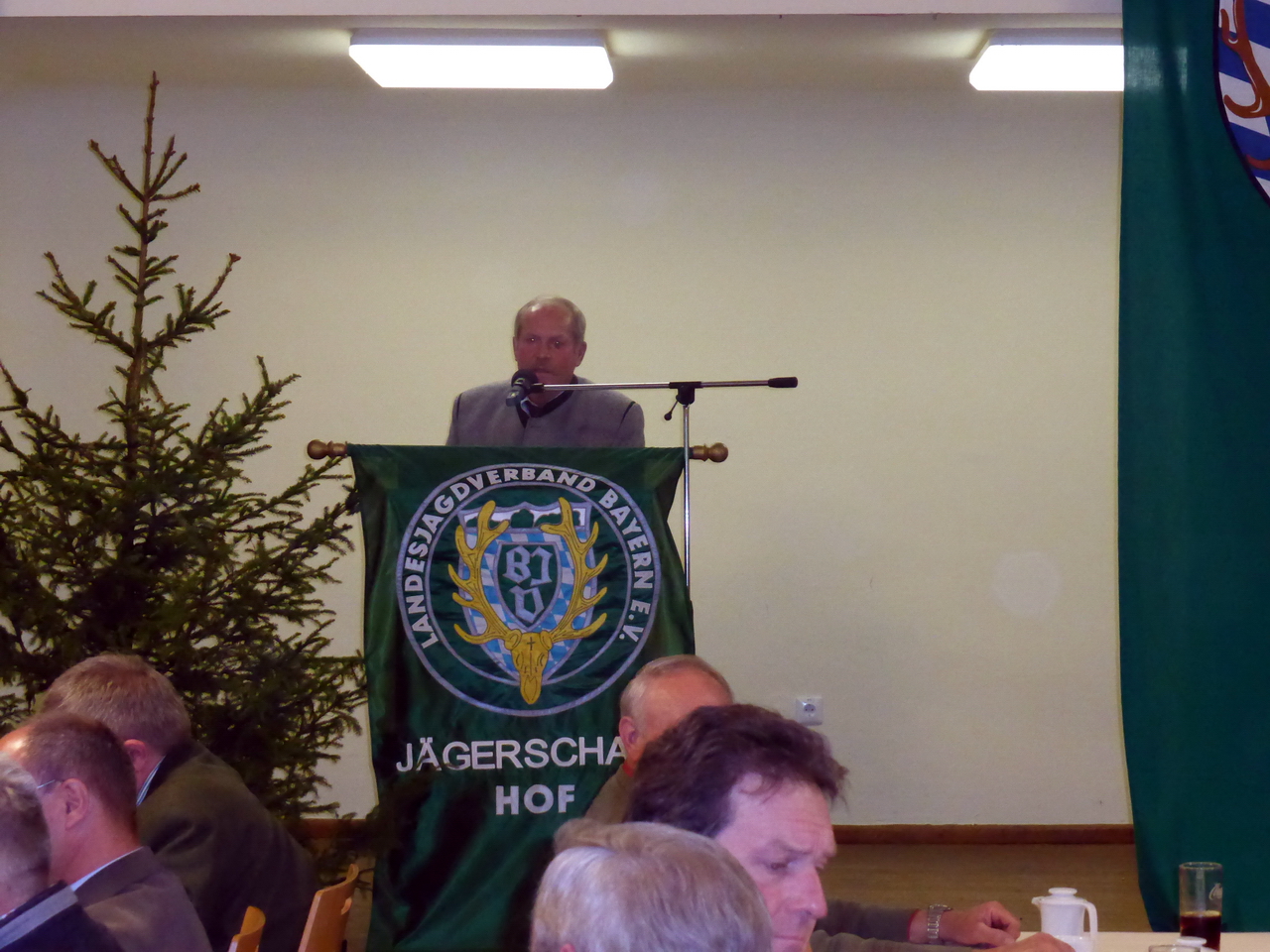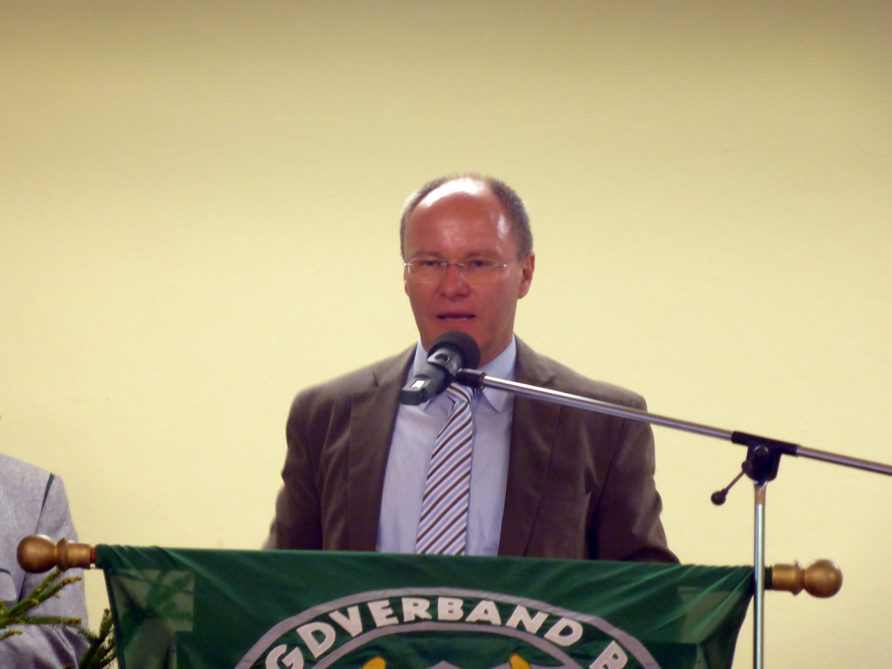 MdL König überbrachte stellvertretend die Grüße von Herrn Bundesinnenminister Friedrich und bezog sich in seinem Grußwort auf die Problematik des vor dem Europäischen Gerichtshof für Menschenrechte ergangenen Urteils zur Verpflichtung von Grundstückseigentümern, die Jagd auf ihrem Land dulden zu müssen. Es handle sich hierbei um eine äußerst ernste Angelegenheit, die aber durch den Gesetzgeber zur Zufriedenheit der Jäger umgesetzt werde. Des weiteren dankte er der Vorstandschaft für die geleistete Arbeit und wünschte allen ein Waidmannsheil.