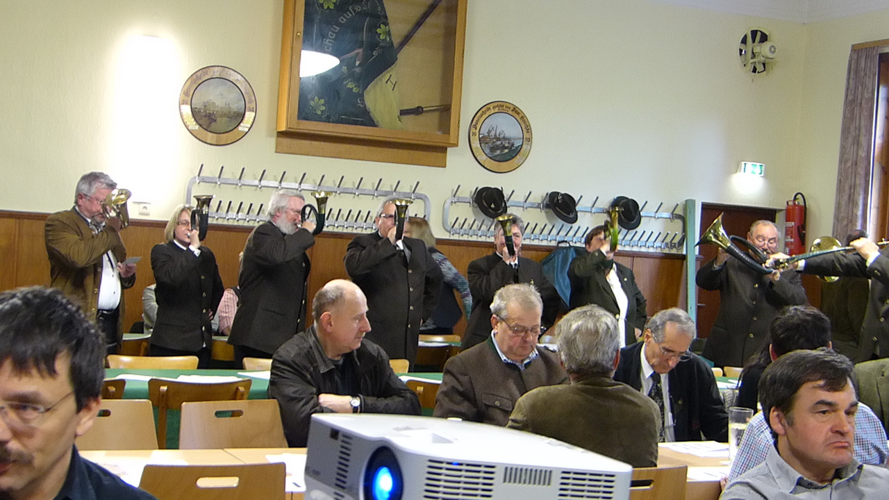 Unter den Klängen der Jagdhornbläser dankte Hartmut Opitz den Rednern für Ihre Wortbeiträge und wünschte allen stets guten Anblick und viel Waidmannsheil im neuen Jagdjahr.
