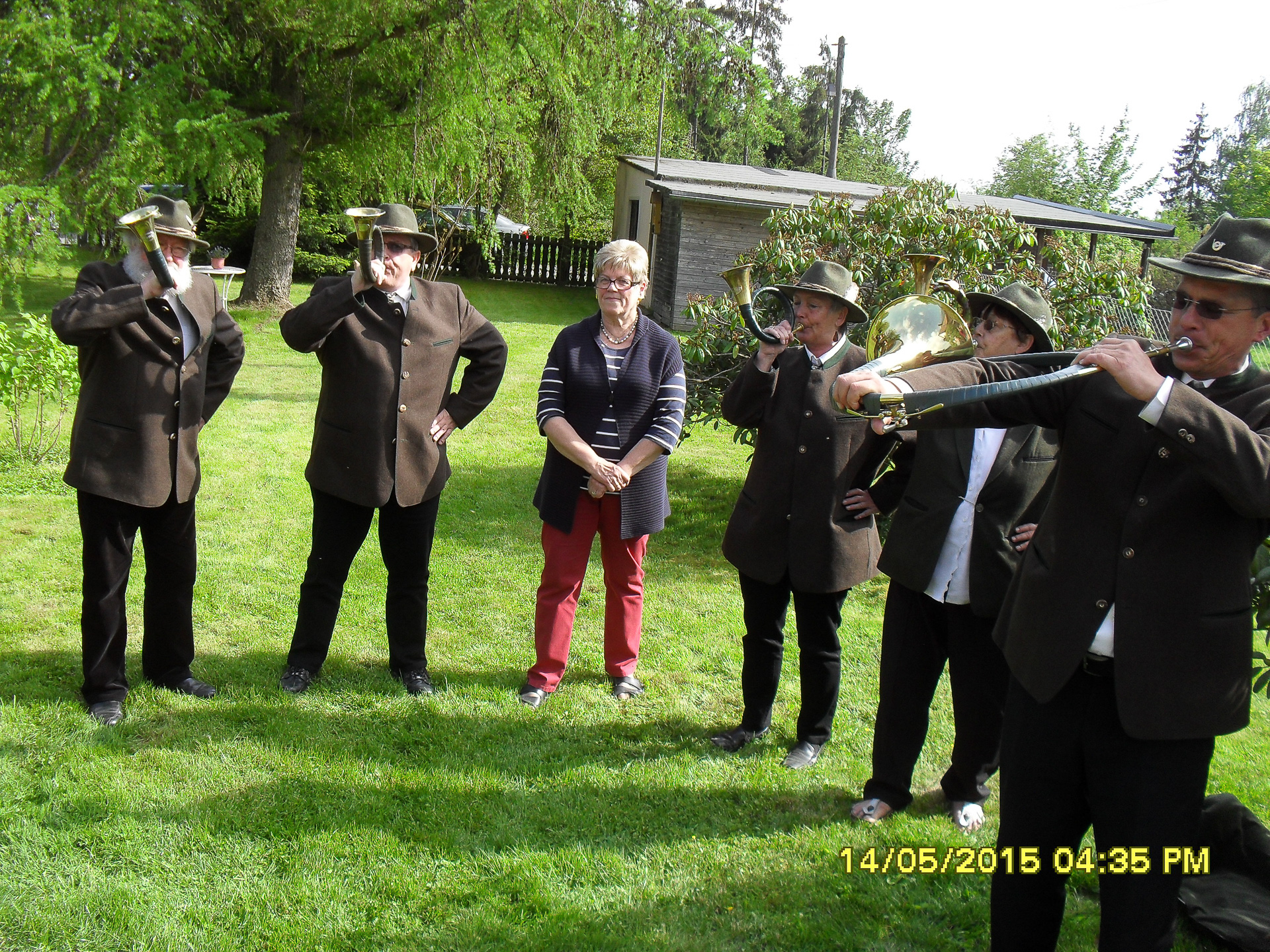 Anlässlich des 65´sten (10.05.) Geburtstages unseres Fördermitglied, Frau Monika Weiß aus Jägersruh haben wir am 14.05. im Garten der Familie Weiß eine Ständchen gebracht und wurden zu Kaffee und Kuchen eingeladen (zwei Bilder).