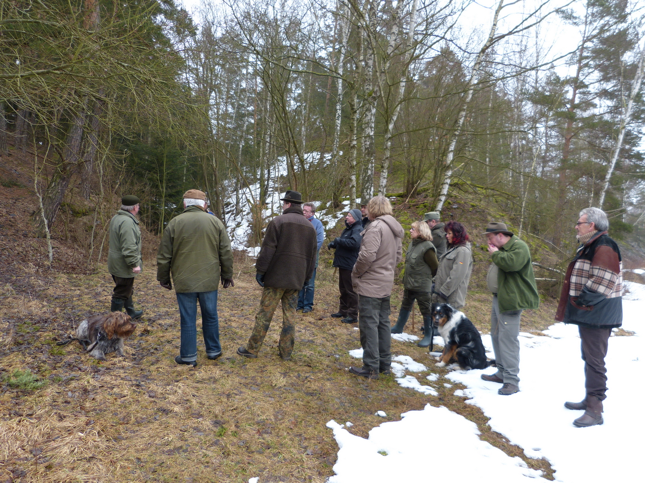 Im Rahmen der jagdlichen Praxis wurde an einem Samstag das Jagdrevier des Ausbilders begangen. Reviereinrichtungen wie Kanzeln und Hochsitze, Kirrungen und Fütterungen, Salzlecken sowie ein Fuchsbau konnten dabei kennengelernt werden. Sogar ein Sprung Rehe kam in Anblick.